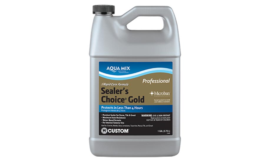 Aqua Mix Sealer’s Choice Gold from Custom is a premium penetrating sealer formulated to provide maximum stain protection. This low VOC, water-based sealer provides a no-sheen, natural look, ideal for use on food preparation and serving areas. This sealer was formulated to achieve optimal penetration into dense low-porosity surfaces. It is rapid curing to protect in less than four hours, while still allowing moisture vapor transmission. Designed for both interior and exterior applications, Sealer’s Choice Gold can be used as a sealer or grout release on a wide range of surfaces, including natural stone and textured porcelain tiles.