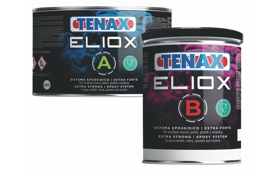Tenax Eliox is an extra clear two-part epoxy knife-grade glue approved for food contact. It is suitable to fill, glue and laminate marble, stone, granite, quartz and ceramic. Ideal for both indoor and outdoor use, this product is extra clear, soft and light, and easy to spread. It finishes to a high gloss and brightness. Very low shrinkage during the hardening process. Dripless and does not sag. Low UV for very low yellowing. Easy to color.